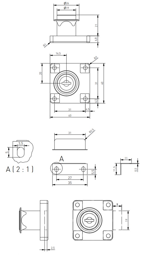 With a square backplate this drawer lock is suitable for all drawer fronts up to 21mm. It has a backset of 23.5mm and with a tongue extending by 9mm is ideally used with an angled striker plate to secure behind. Available only as differs which are non-mastered.